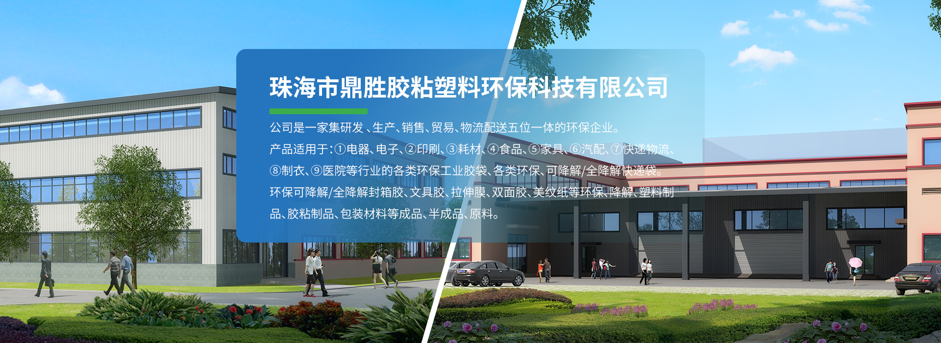 鼎勝是一家不斷創新發展的環保降解、膠袋、封箱膠企業, 創始于廣東美麗珠海, 公司注冊資金1000萬, 花園式廠房超一萬平方米。